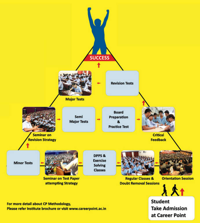Career Point follows Scientific Teaching Methodology includes Regular Classes, Periodic Tests, Computerised Feedback, Motivational Seminars and Special Revision Classes which step by step prepare students for the elite examinations without putting any stress. Below is the success path which every student follows.