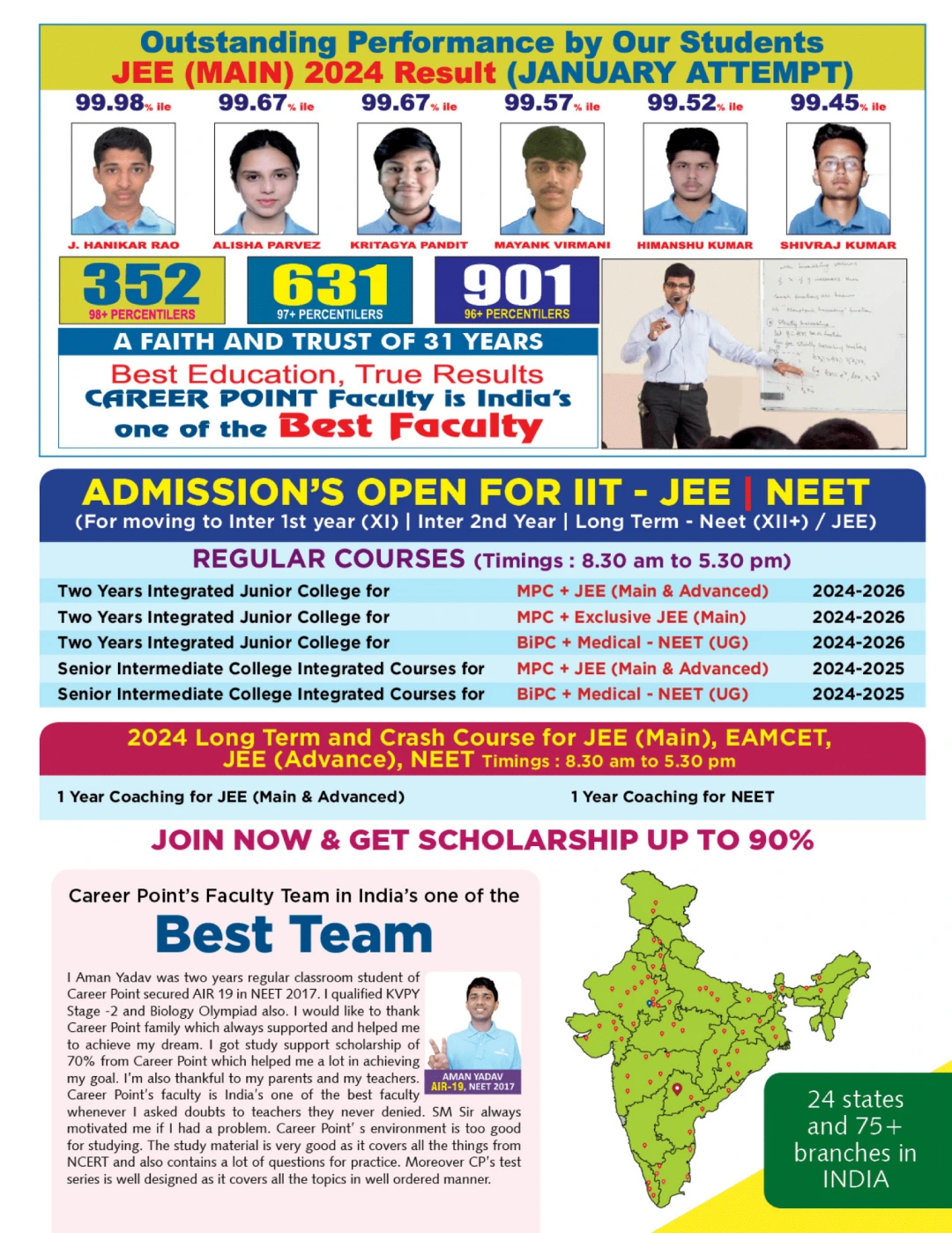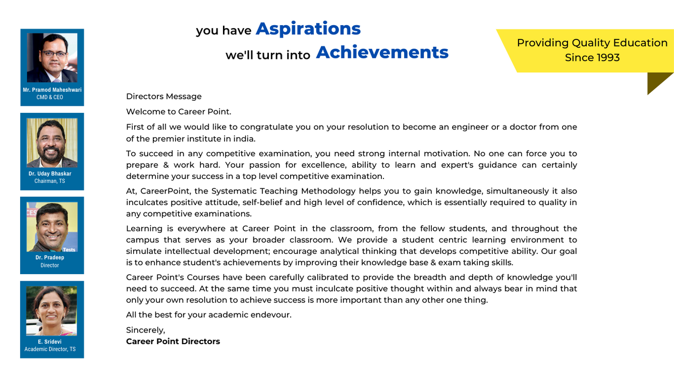 The Career Point is an ideal institute to start your journey for success due to many reasons. Few of them are….
